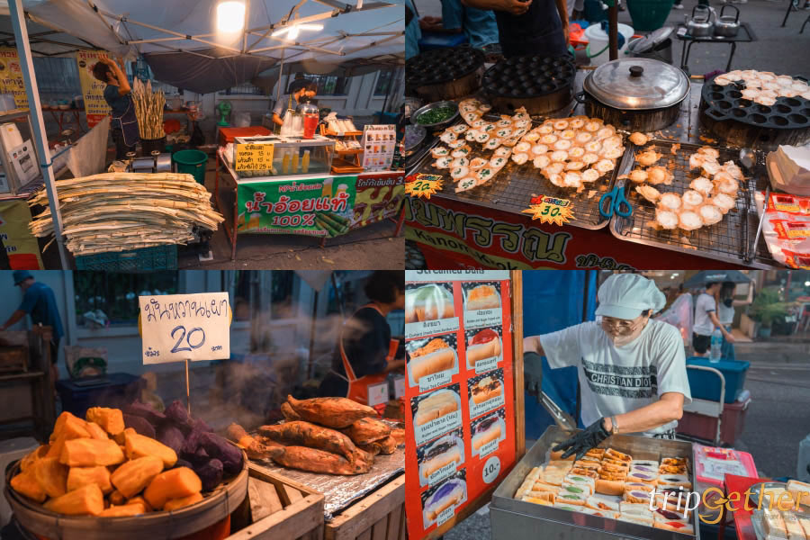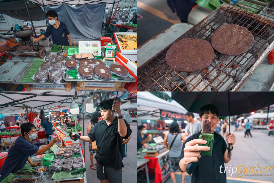 ขนมหวานก็มีให้เลือกอยากจัดเต็ม ทั้งขนมพื้นเมืองเชียงราย ข้าวงาปิ้งร้อนๆ เป็นเมนูที่หากินได้เฉพาะพื้นที่เท่านั้น ทางภาคเหนือจะเรียกว่าข้าวงาปิ้งว่าข้าวปุกงา เป็นของกินเล่นทำจากข้าวเหนียวตำผสมกับงาขี้ม่อน เติมความหวานด้วยน้ำผึ้งป่าแล้วเอาย่างร้อนๆ หอมกลิ่นงาน เคี้ยวนุ่มหนุบหนับ และก็ยังมีมันหวานเผาที่ขอบอกเลยว่ากินตอนอากาศเย็นๆ อร่อยฟินมาก~ ขนมครก ขนมปังนึ่งโบราณหน้าต่างๆ เดินผ่านร้านคือกลิ่นหอมฉุยจนต้องแวะซื้อ