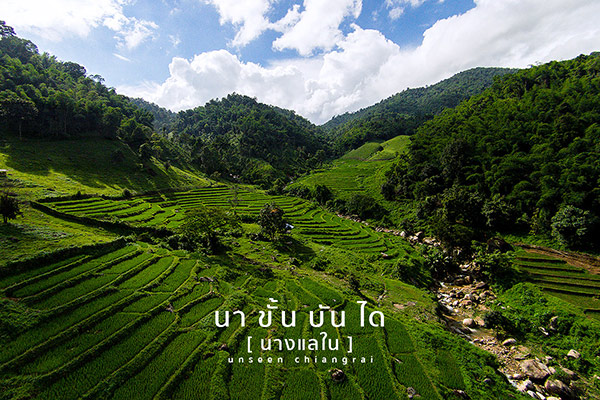 “เชียงรายเที่ยวไหนดี” ถ้าพูดถึงเชียงราย ใครหลายๆคน คงนึกถึงวัดร่องขุน ไร่ชาเขียว แม่สลอง หรือภูชี้ฟ้า แต่ฤดูฝนแบบนี้คงหนีไม่พ้น Green season และเป็นที่มาของ โปรเจค Discovery ของพวกเรา ถือการเปิด unseen หน้าใหม่ของเชียงราย นั่นคือ นาขั้นบันได นางแลใน (อันที่จริงอาจใช้ชื่ออื่น แต่ผมขอเรียกตามชื่อน้ำตกที่ไหลผ่านนาขั้นบันไดแห่งนี้) ถ้าจะย้อนไปว่าผมรู้จักที่แห่งนี้ได้อย่างไร คงจะย้อนกันยาวไปสองสามปี เอาเป็นว่านาขั้นบันไดแห่งนี้อาจคุ้นตาของเหล่าสิงห์มอเตอร์ครอส ในย่านนี้ เพราะ เป็นสนามแข่ง และออกทริปของเหล่ามอเตอร์ครอส และครั้งนึงผมได้มีโอกาสขี่สองล้อเขาไปเที่ยวน้ำตก แล้วเจอกลุ่มพี่ๆมอเตอร์ครอสไปจนเจอนาขั้นบันได แต่ตอนนั้นยังไม่ได้ทำนา จนทำให้มีทริปปักหมุด GPS ในครั้งนี้ภาระกิจในครั้งนี้ตื่นเต้นเป็นพิเศษ เพราะระหว่างทางมาเชียงรายฝนตกตลอดเส้นทาง และในเย็นวันที่ไปถึง น้ำป่าก็ไหลลงมาทักทายพวกเรา เป็นเหตุให้พี่เจ้าหน้าที่ของเทศบาลนางแลที่จะขึ้นไปกับพวกเราต้องไปช่วยเหลือชาวบ้านที่ประสบภัยก่อน จึงไปกับพวกเราไม่ได้ พอรุ่งเช้าเราเลยตัดสินใจลุยกันไปก่อน เพราะเวลาที่อยู่เชียงรายมีน้อยมาก