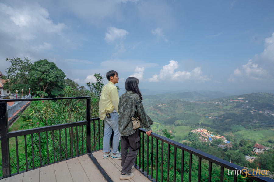 อีกหนึ่งไฮไลท์ที่ทำให้ พระบรมธาตุเจดีย์ศรีนครินทราสถิตมหาสันติคีรี กลายเป็นจุดหมายยอดฮิตของนักท่องเที่ยว คือ วิวสวยระดับพาโนรามา ที่เห็นได้จากบริเวณด้านบนของพระบรมธาตุฯ เพราะสามารถมองเห็นทิวเขาสลับซับซ้อนของดอยแม่สลอง ได้แบบเกือบ 360 องศา