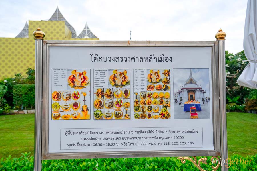 สำหรับผู้ที่ต้องการทำพิธีบวงสรวงศาลหลักเมือง สามารถโทรจองโต๊ะบวงสรวงได้ที่เบอร์ 02 222 9876 ต่อ 118, 122, 123, 145 ให้บริการทุกวันตั้งแต่เวลา 06.30 – 18.30 น. ราคาชุดบวงสรวงมีให้เลือก 3 แบบด้วยกันชุดเล็ก 1,600 บาท ชุดกลาง 2,300 บาท และชุดใหญ่ 7,000 บาท
