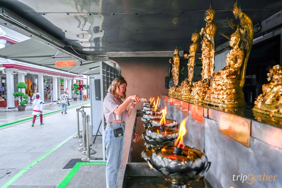 และสุดท้ายจุดที่ 5 จุดเติมน้ำมันตะเกียงพระประจำวันเกิด แนะนำว่าเติมน้ำมันตะเกียงเฉพาะพระประจำวันเกิดตัวเองเท่านั้น และเติมเพียงครึ่งขวด เพื่อความสว่างไสวในชีวิต มีแต่ความเจริญรุ่งเรือง ส่วนที่เหลือให้นำไปเติมที่ตะเกียงสะเดาะเคราะห์ เพื่อให้สิ่งที่ไม่ดีออกไปจากตัวเรา