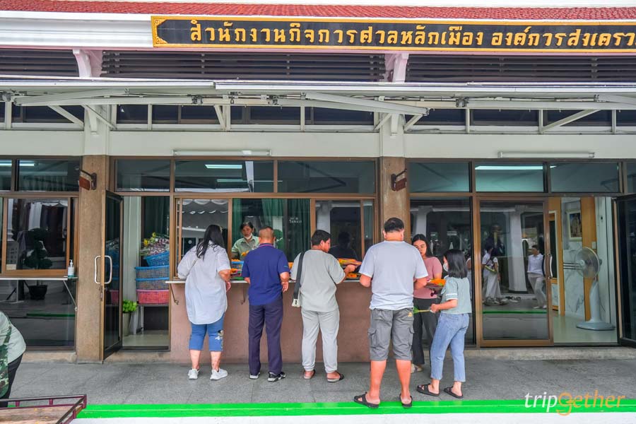 นำพวงมาลัยมาถวายองค์หลักเมืองกรุงเทพ (องค์จริง) ภายในศาล