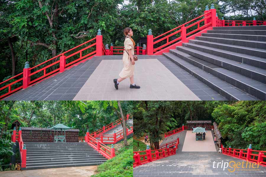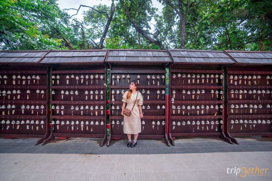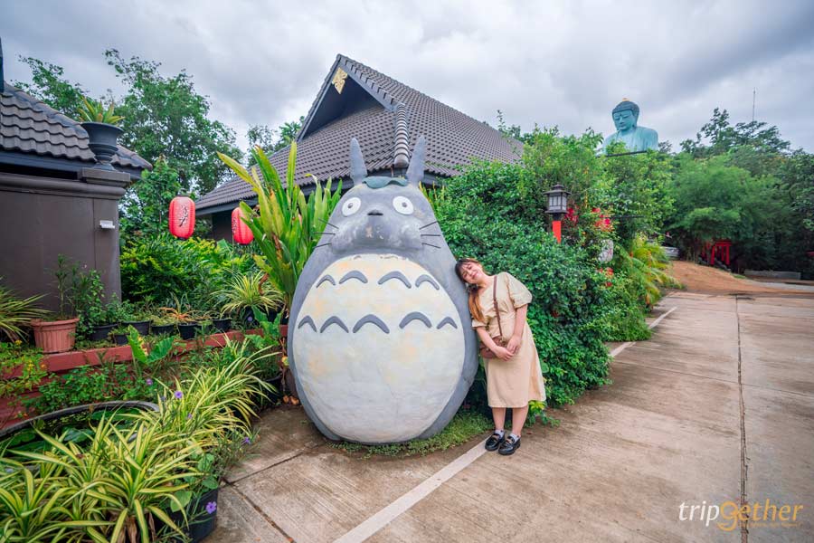 ก่อนที่เราจะเดินขึ้นไปไหว้พระใหญ่ไดบุตสึ จะมีตัวการ์ตูนโทโทโร่ยืนเป็นแลนมาร์กตรงจุดนี้ ไม่พลาดที่จะถ่ายรูปสักหน่อย ส่วนด้านหลังของโทโทโร่นั้น จะเป็นร้านดอยพระ รีเฟรช ตกแต่งด้วยโคมไฟขาวแดงสไตล์ญี่ปุ่นเข้ากับบรรยากาศ ภายในร้านขายทั้งเครื่องดื่ม ขนม และของที่ระลึก จากนั้นเราเดินไปต่อยังลานบันได เราจะเจอกับซุ้มระฆังอธิษฐาน ซึ่งได้จำลองมาจากวัดในญี่ปุ่น สำหรับระฆังแต่ละลาย จะแยกตามเรื่องที่ขอ ระฆังลายช้าง ขอเรื่องความสำเร็จ ระฆังลายไก่ ขอเรื่องการงาน ครอบครัว สุขภาพ และระฆังลายกุหลาบ ขอเรื่องความรัก