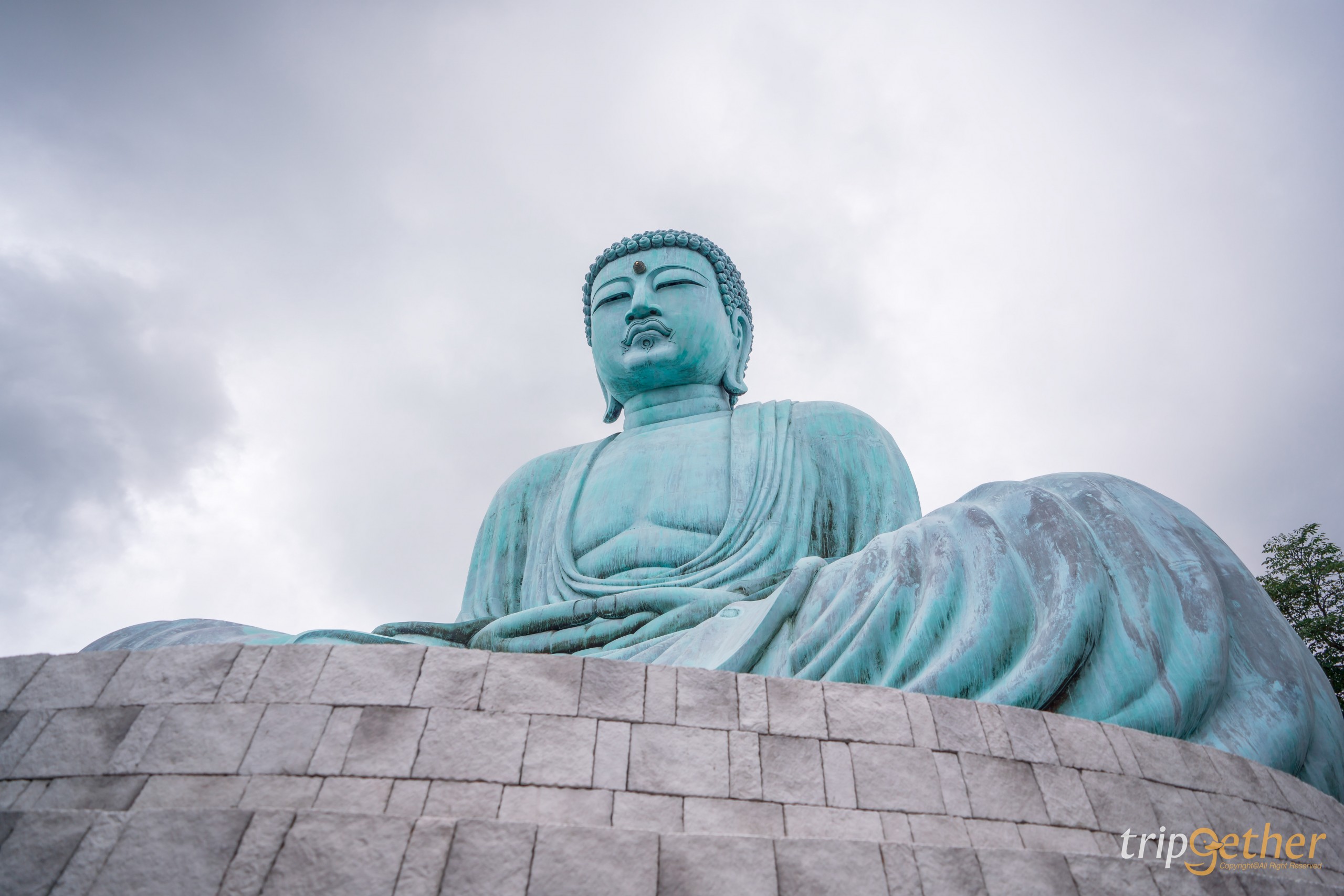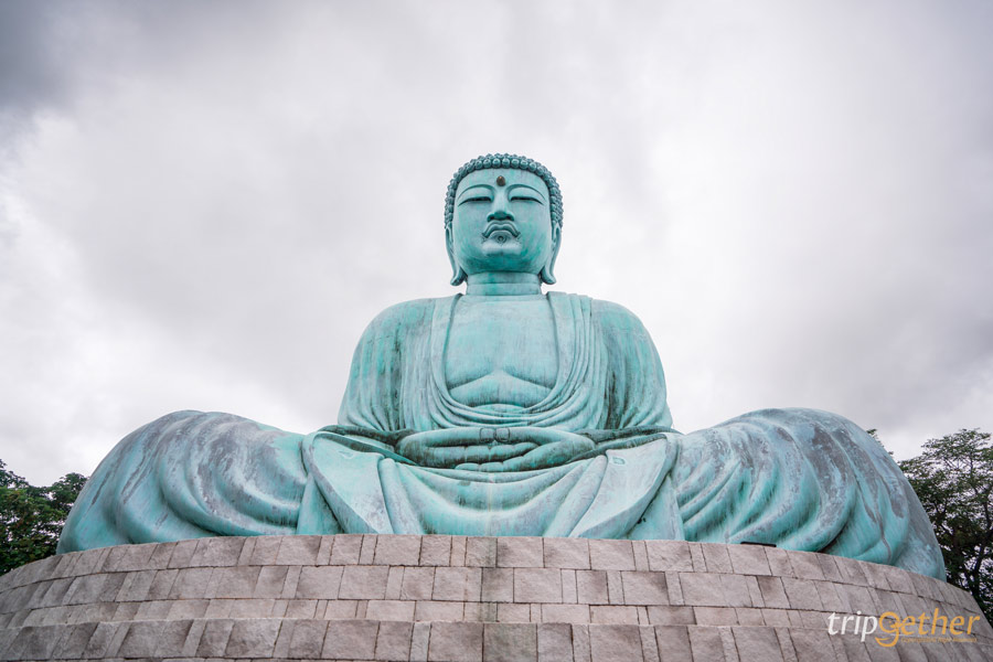 หลังจากที่เราแขวนระฆังอธิษฐานของเราเรียบร้อยแล้ว เราจะเจอกับกระถางธูปขนาดใหญ่ และภาพเบื้องหลังที่เป็นจุดหมายของเราในวันนี้ คือ องค์พระใหญ่ไดบุตสึ ที่เรามองจากมุมด้านล่างนี้ องค์พระใหญ่แบบญี่ปุ่นโดดเด่น อลังการ สีเขียวอมฟ้าสดใส เห็นแบบนี้แล้ว ไม่รอช้า เราเดินขึ้นบันไดไปไหว้องค์ท่านกัน