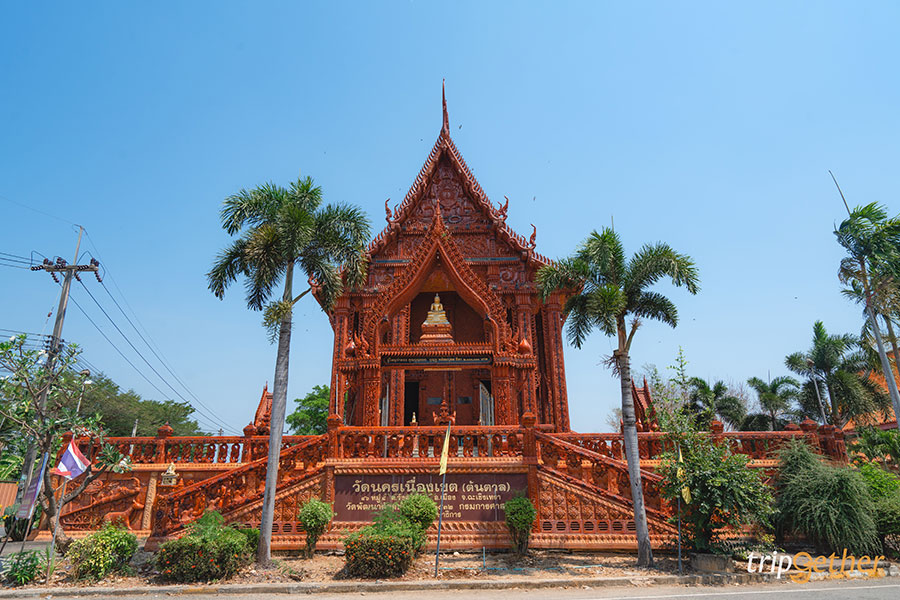 วัดเก่าแก่แห่งจังหวัดฉะเชิงเทราที่อายุร้อยกว่าปีแห่งนี้มีชื่อว่า วัดนครเนื่องเขต หรือเดิมชื่อว่า วัดต้นตาล ตั้งอยู่อำเภอเมืองฉะเชิงเทรา สันนิษฐานว่าสร้างขึ้นในสมัยรัชกาลที่ 5 หรือราว พ.ศ. 2430 เป็นวัดขนาดเล็กที่บรรยากาศร่มรื่นและด้านหลังติดกับคลองนครเนื่องเขต ที่สำคัญโบสถ์หลังเก่าของที่นี่ยังได้ขึ้นทะเบียนโบราณสถานของชาติจากกรมศิลปากรขึ้น เมื่อปี พ.ศ. 2544 อีกด้วย และสำหรับไฮไลท์ที่ทริปเก็ทเตอร์จะพาไปชมในครั้งนี้ก็คือ โบสถ์หลังใหม่ที่สร้างด้วยกระเบื้องเคลือบดินเผาทั้งหลัง บอกเลยว่างดงามและมีเอกลักษณ์ไม่เหมือนที่ใด