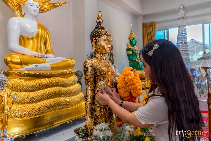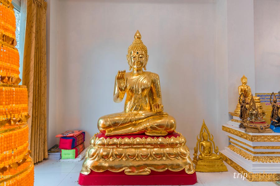 สำหรับจุดไฮไลท์ที่ห้ามพลาดเลยก็คือ พระองค์ยืน ที่เป็นต้นแบบของหลวงพ่อใหญ่เมตตาประทานพร สามารถเข้ามากราบสักการะ และติดเเผ่นทองเพื่อความเจริญและเป็นสิริมงคลได้เลย