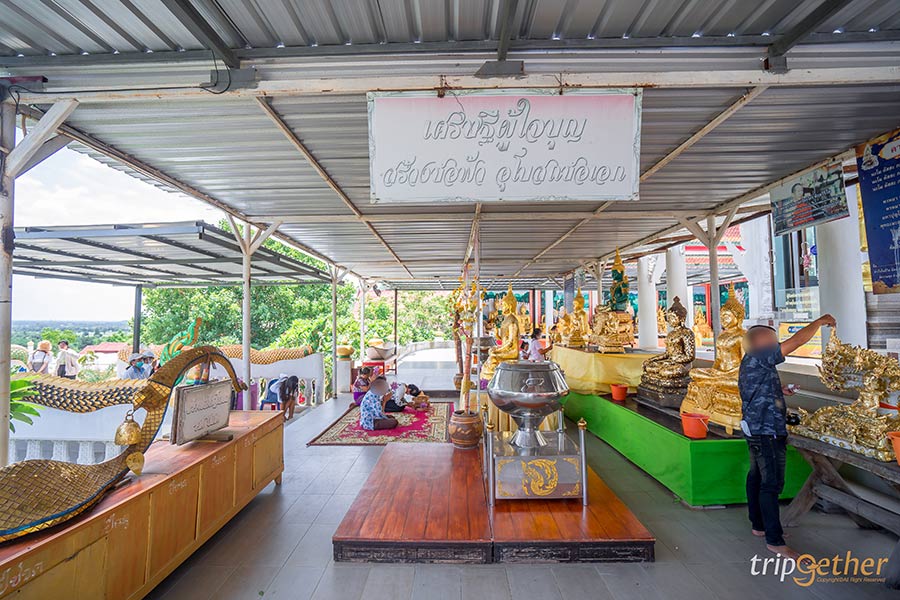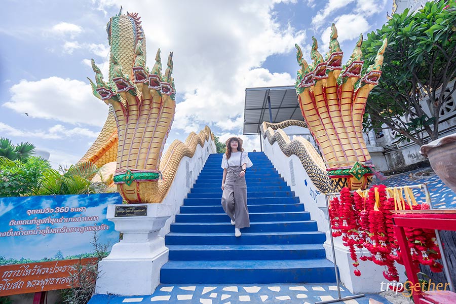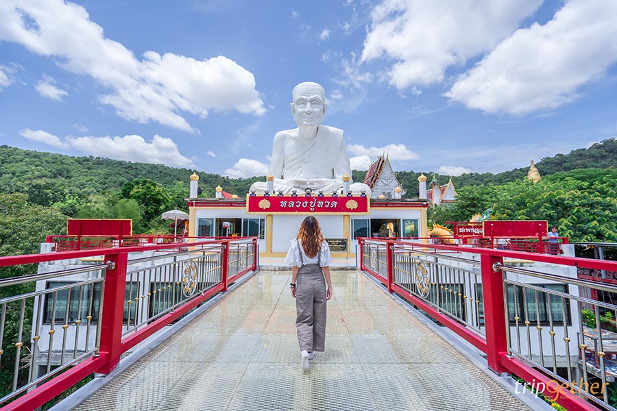 หลังจากเดินลอดใต้ท้องพญานาคเสร็จก็เดินมาข้างๆ จะเป็นที่ประดิษฐานของหลวงปู่ทวดองค์ใหญ่ จุดนี้นอกจากจะได้สักการะหลวงปู่ทวดก็ยังมี Sky Walk ที่สามารถเดินมาดูวิวธรรมชาติได้แบบ 360 องศา และด้วยความที่เป็นจุดที่สูงที่สุดของตำบลท่ามะกาทำให้วิวที่ได้กว้างไกลไปสุดสายตา ถือว่าเป็นอีกหนึ่งจุดเช็คอินที่ห้ามพลาด