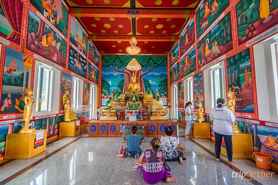 นอกจากนี้ในวัดยังมีสิ่งศักดิ์สิทธิ์และพระพุทธรูปให้ได้กราบขอพรอีกมากมาย เริ่มต้นด้วยอุโบสถที่ภายในมีพระพุทธทองคำ พระประธารปางมารวิชัยและพระแก้วมรกตจำลอง นอกจากนี้ด้านหลังอุโบสถก็มีพระพุทธรูปปางไสยาสน์สีทององค์ใหญ่ และยังมีพระพุทธสุพรรณกัลยา หลวงพ่อโสธร พระอรหันต์ 108 ท้าวเวสสุวรรณ พระพิฆเนศ เจ้าแม่กวนอิม บอกเลยว่าได้เดินเติมแต้มบุญกันรัวๆ