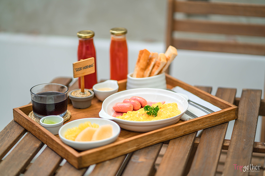 และสำหรับคนที่พักที่นี่ตอนเช้ายังมีเมนูอร่อยๆ ให้เราได้อิ่มกันต่อ โดยห้องอาหารจะเปิดให้บริการตั้งแต่ 7.30 – 10.00 น.