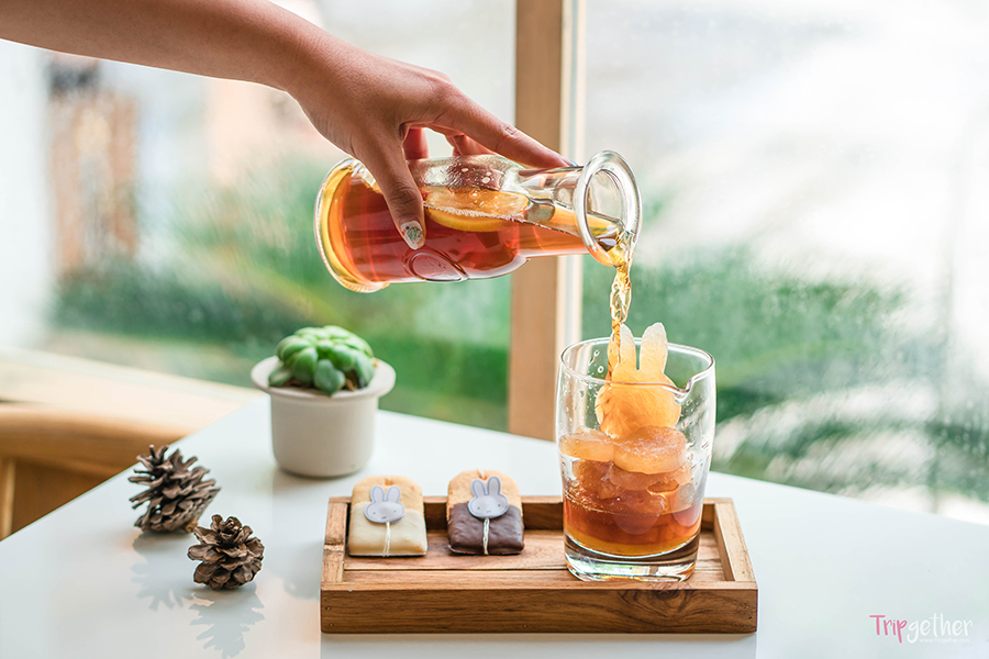โพสต์ท่ากันเพลินจนพลังงานเริ่มลด เลยเดินมาหาอะไรเย็นๆ หวานๆ กินที่ Miffy’s Garden Cafe ซึ่งเป็นคาเฟ่น่ารักๆ สไตล์มินิมอลที่เน้นการตกแต่งในโทนสีขาว และใช้เฟอร์นิเจอร์ไม้สีอ่อนที่ให้กลิ่นอายความเป็นญี่ปุ่น ตกแต่งตามมุมต่างๆ ด้วยโคมไฟ หมอนอิงมิฟฟี่ และยังมีมุมสีเขียวที่ช่วยให้เราได้รู้สึกสบายตาอีกด้วย