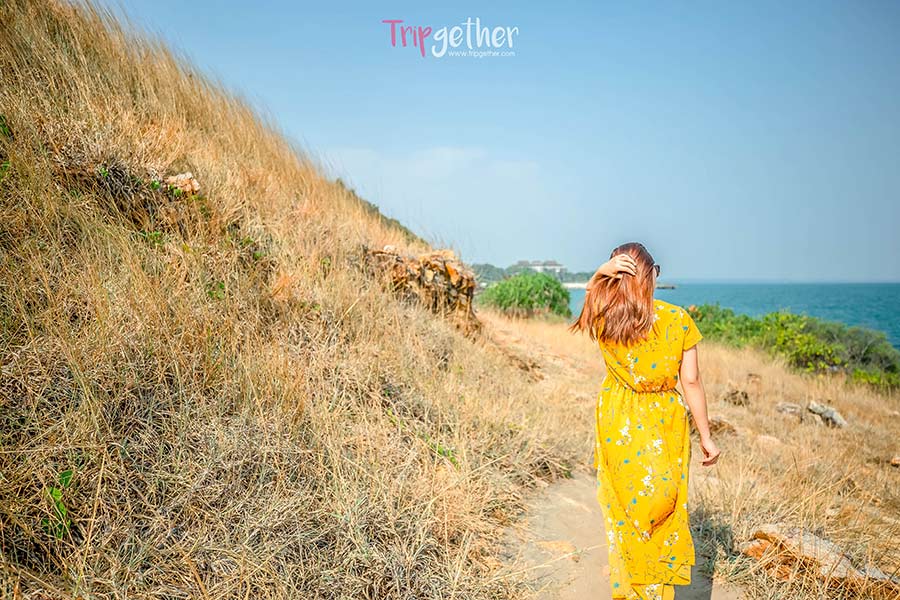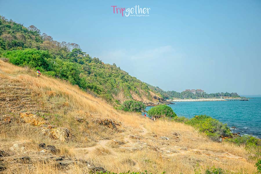 เมื่อเดินเข้ามาได้สักพักจะผ่านบริเวณเนินเขาซึ่งเป็นที่มาของชื่อเขาแหลมหญ้า ที่ให้ความรู้สึกเหมือนเช็คอินอยู่กลางทุ่งสะวันนา