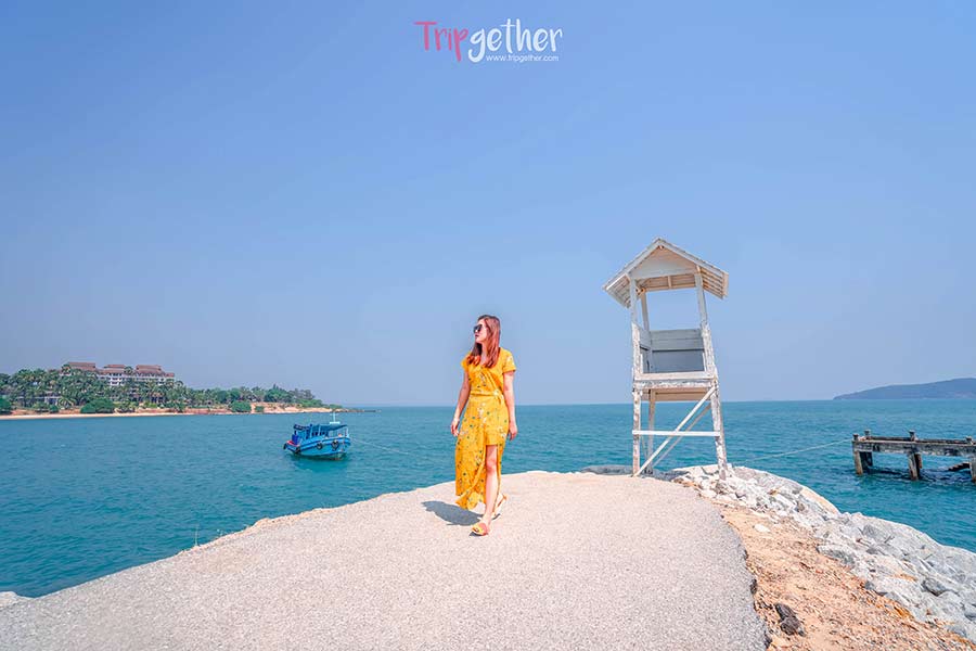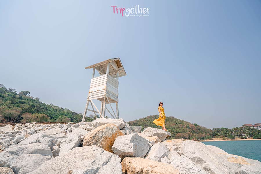 นอกจากสะพานท่าเทียบเรือแล้วยัง มีอีกหนึ่งมุมถ่ายรูปเก๋ๆ กับหอคอยสีขาวริมทะเลสุดชิค