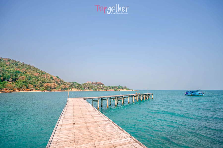 จากบริเวณลานกางเต็นท์ไปไม่ไกลจะเป็นอีกหนึ่งจุดแลนมาร์คสำคุญของอุทยานเขาแหลมหญ้า คือสะพานที่ยื่นลงไปกลางทะเล ซึ่งหากสังเกตุดูจะเห็นสะพานเ่าอยู่บริเวณด้านขวามือ ซึ่งปัจจุบันก็เริ่มพุพังลงเรื่อยๆ ส่วนบริเวณด้านซ้ายจะเป็นสะพานท่าเรียบเรือใหม่นั่นเอง