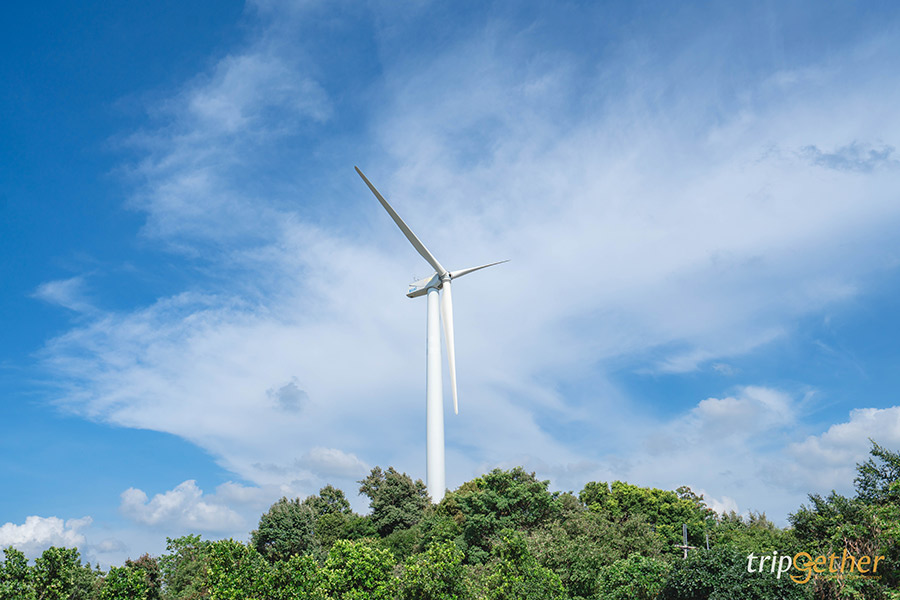 ภาพกังหันลมตั้งโดดเด่นกลางธรรมชาติของผืนป่า สายน้ำ และท้องฟ้า เป็นความสวยงามที่เรียบง่ายและดูแล้วรู้สึกสบายใจสุดๆ บวกกับธรรมชาติของเขายายเที่ยงยังสวยและอุดมสมบูร์มาก มาแล้วใจฟูไม่ไหว~