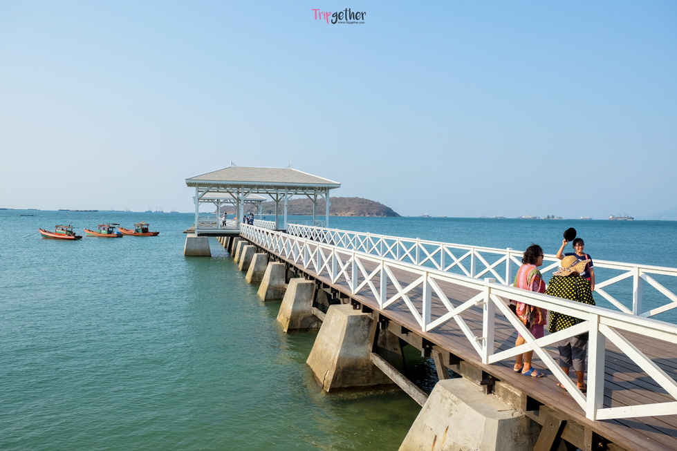 สะพานไม้สีขาวทอดลงกลางทะเลแห่งนี้ เป็นสะพานเก่าแก่ที่ถูกก่อสร้างขึ้นตั้งแต่สมัยรัชกาลที่ 5 เพื่อเป็นท่าเทียบเรือในอดีต แต่ปัจจุบันกลายเป็นสถานที่ท่องเที่ยวที่เขาว่ากันว่าเป็น “สะพานที่โรแมนติกที่สุด” เอาเป็นว่าใครอยากรู้ว่าโรแมนติกแค่ไหนก็ต้องลองพาแฟนไปนะคะ คำเตือน!! ควรเลือกเวลาสำหรับสวีทนิดนึ่ง เพราะกลางวันร้อนมาก