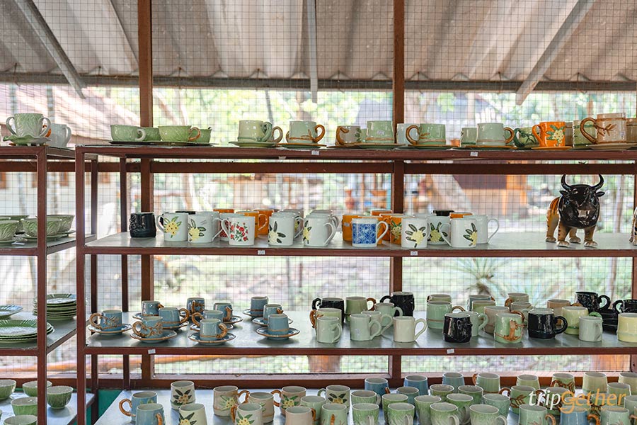 ภายในแก่งส้มแมวยังมีศูนย์ศิลปาชีพที่เปิดให้ชมเครื่องปั้นดินเผา ไม่ว่าจะเป็นชุดจาม ชาม แก้ว รูปปั้นสัตว์ต่างๆ ใครที่ชอบก็สามารถซื้อเป็นของฝากกลับไปได้