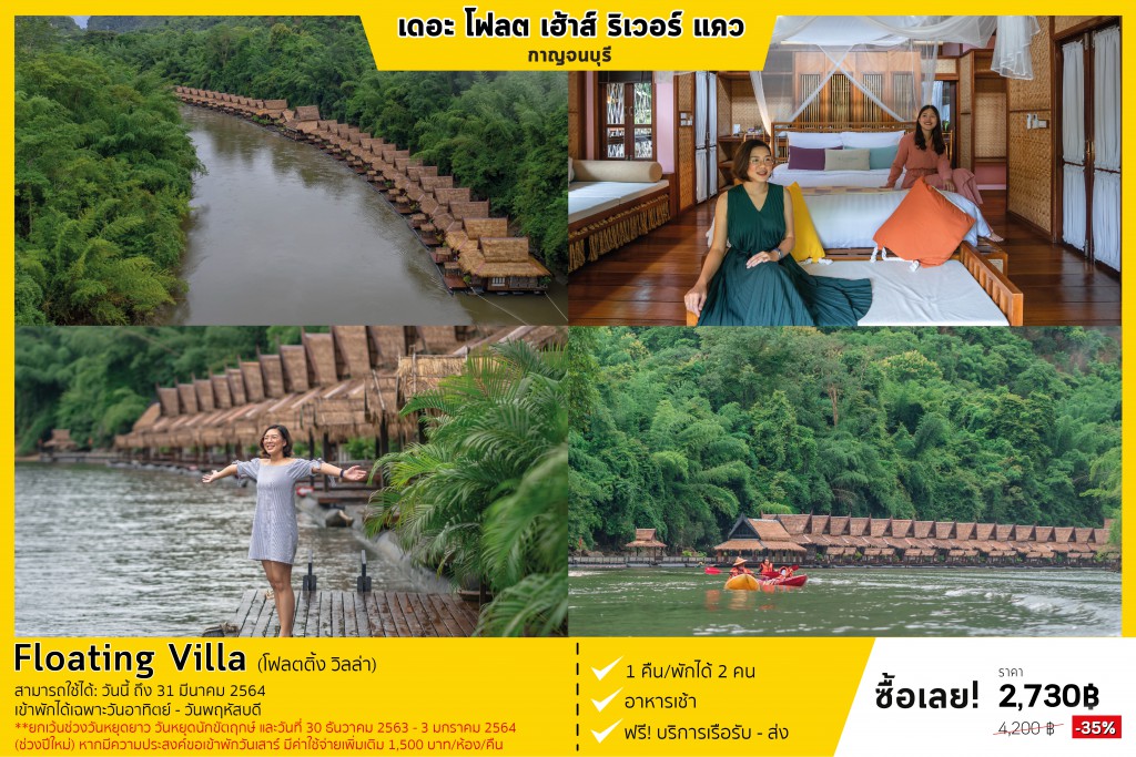 เดอะ โฟลตเฮาส์ ริเวอร์แคว รีสอร์ท รีสอร์ทหรูตั้งอยู่ที่กาญจนบุรี บนแม่น้ำแควโอบล้อมไปด้วยธรรมชาติของขุนเขาและแม่น้ำไหลผ่านตลอดเวลา ให้ฟีลเหมือนได้มานอนกลางน้ำสุดชิลล์ในราคาเบาๆ พร้อมดีลห้องพักจัดเต็มด้วยสิ่งอำนวยความสะดวกครบครัน