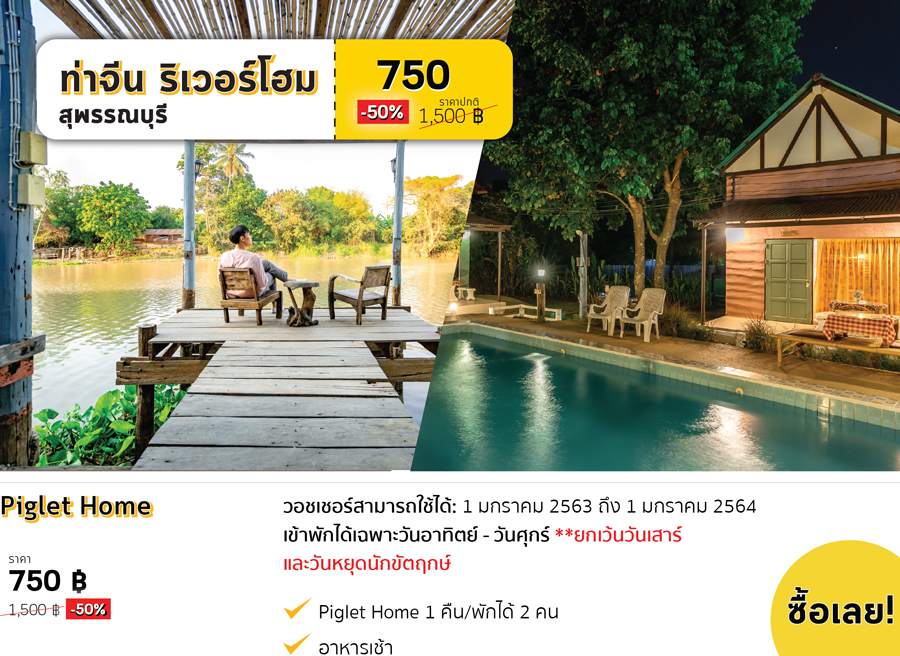 – ห้องพัก Piglet Home จำนวน 1 หลัง 1 คืน สำหรับ 2 คน/รวมอาหารเช้า