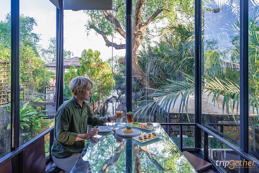 บางกอก ทรี เฮ้าส์ ตั้งอยู่ที่บางน้ำผึ้ง สมุทรปราการ ร้านอาหารคาเฟ่สุดชิคที่ออกแบบสถานที่ได้กลมกลืนกับธรรมชาติ มีมุมไฮไลท์น่านั่งทั้งโซนดาดฟ้า มองเห็นบรรยากาศโดยรอบได้อย่างชัดเจน รวมไปถึงวิวแม่น้ำเจ้าพระยาอีกด้วย นอกจากนี้ยังมีโซนมุมกระจก นั่งกินข้าวไปชมวิวป่าต้นจากไป และเป็นจุดถ่ายรูปสวยๆ ที่ห้ามพลาดอีกด้วย ใครที่มาเที่ยวแถวบางน้ำผึ้งแวะมานั่งกินอะไรที่นี่ ชิลล์ๆ เลยล่ะ
