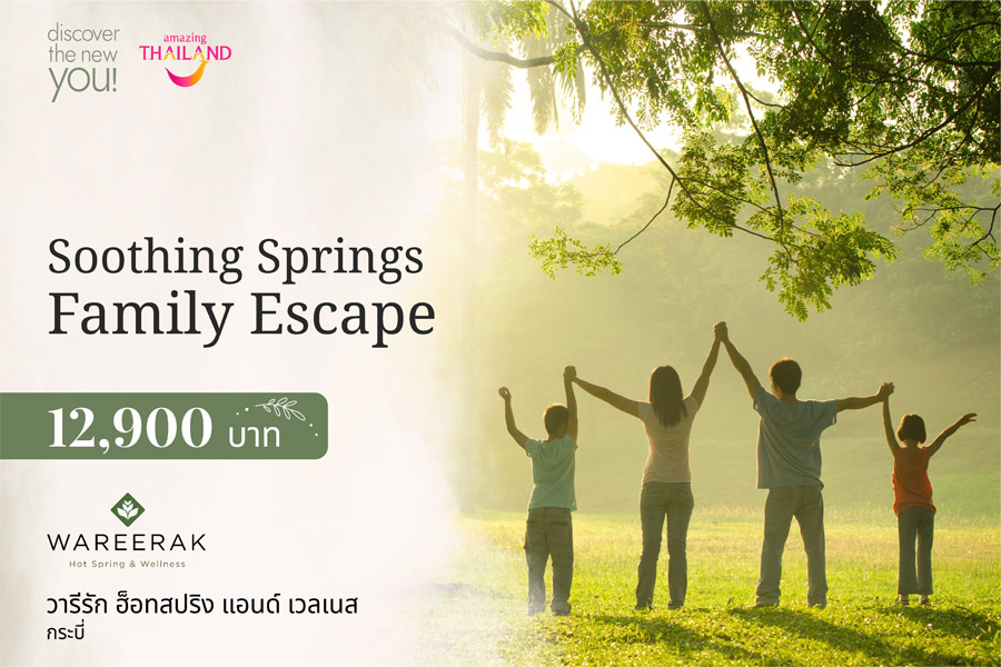 โปรแกรมรีทรีตสำหรับครอบครัวในวิลล่าแบบไทยประยุกต์ที่โอ่โถง กว้างขวาง กลางป่าฝน และสายหมอกอ่อนโยนจากน้ำตกร้อนแห่งคลองท่อม พาสมาชิกในครอบครัวฟื้นฟูสุขภาพด้วยโปรแกรมธรรมชาติบำบัดแบบองค์รวมกลางธารน้ำพุร้อน และโปรแกรมโยคะรีทรีต พลาดไม่ได้กับการเดินป่าธรรมชาติศึกษาสู่สระมรกตกลางป่าราบต่ำ และอาหารค่ำซีฟู้ดมื้อใหญ่