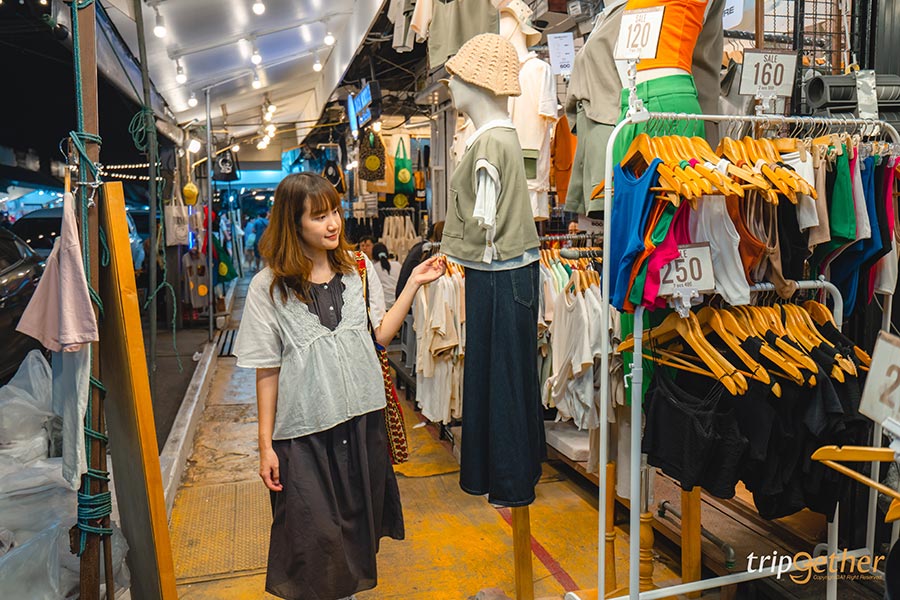 ปิดท้าย ที่เที่ยวกรุงเทพ ใกล้รถไฟฟ้า ด้วยแหล่งช้อปปิ้งยอดฮิตอย่าง ตลาดนัดจตุจักร ตลาดนัดขนาดใหญ่ที่รวบรวมสินค้าไว้แทบทุกประเภท โดยเฉพาะเสื้อผ้าแฟชั่นที่มีให้เลือกหลากหลายสไตล์ ไม่ว่าจะเป็นมินิมอล เกาหลี หรือแฟชั่นสายวัยรุ่น นอกจากนี้ยังมีเครื่องประดับ กระเป๋า รองเท้า และของแต่งบ้านให้เลือกซื้ออีกมากมาย บรรยากาศคึกคักและเต็มไปด้วยร้านค้าเรียงราย สายช้อปจดลงลิสต์ด่วน