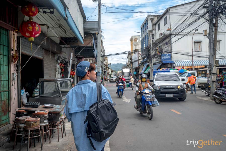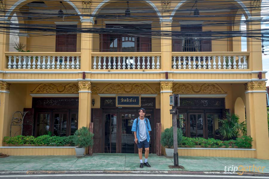 เข้าสู่ตัวเมือง แวะพักเติมพลังกันที่ บ้านสิทธิสังข์ อาคารเก่าแก่สีเหลืองอ่อน สไตล์โคโลเนียลผสมจีน มีอายุกว่า 100 ปี ตั้งแต่ พ.ศ. 2463 สีของอาคารใช้สีธรรมชาติจากดินผสมกับน้ำข้าวเหนียว ให้โทนอบอุ่นและคลาสสิกสุดๆ