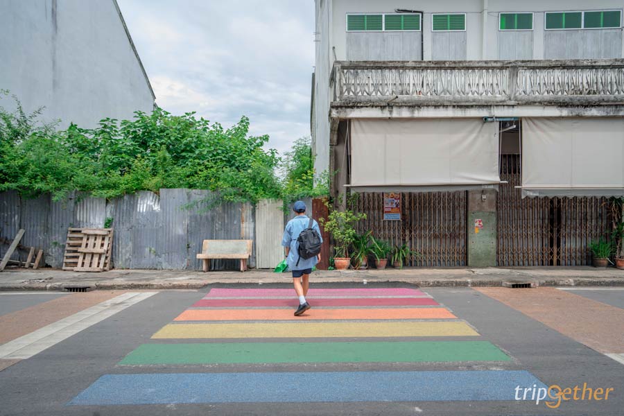 จากบ้านสิทธิสังข์ เดินเล่นต่อได้เลยที่ ถนนปากแพรก ถนนสายประวัติศาสตร์ของกาญจนบุรี ที่มีอายุกว่า 117 ปี และยังเป็นถนนคอนกรีตสายแรกของจังหวัด ตลอดสองฝั่งถนนเรียงรายด้วยอาคารเก่า สถาปัตยกรรมตะวันออกผสมตะวันตก ที่ยังคงมีผู้อยู่อาศัยและเปิดร้านค้าตามปกติ บ้านแต่ละหลังมีป้ายเล่าเรื่องราวของตระกูลให้ได้อ่าน เดินไปเรื่อยๆ จะรู้สึกเหมือนได้ย้อนเวลา เห็นวิถีชีวิตเรียบง่ายที่ยังมีลมหายใจอยู่จริงๆ