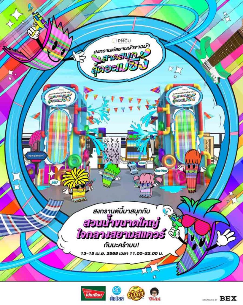 ไปกันต่อกับ สงกรานต์สยามผ้าขาวม้า สาดสนุกสุดอะเมซิ่ง งานสงกรานต์ประจำปี 2568 ความสนุกที่ไม่ควรพลาด ซึ่งงานนี้ได้เนรมิตสยามสแควร์ ให้เป็นสวนสนุก สวนน้ำใจกลางเมืองมาพร้อมเวทีเคลื่อนที่สาดความมันส์ ม่วนซื่น ม่วนจอยไปกับสไลเดอร์ยักษ์กลางกรุง อุโมงค์น้ำพุ และกิจกรรมสนุกๆ จากผู้สนับสนุนอีกมากมาย ร่วมสรงน้ำพระเพื่อความเป็นสิริมงคล อิ่มอร่อยไปกับโซนอาหารร้านดัง ร้านเด็ด กว่า30 ร้าน นอกจากนี้ยังมีจุดเติมน้ำสะอาดบริการฟรี 50 จุดทั่วงาน และไฮไลท์เด็ดจัดเต็มกับมินิคอนเสิร์ตตลอดทั้ง 3 วัน งานนี้เที่ยวฟรีตลอดงานนะ
