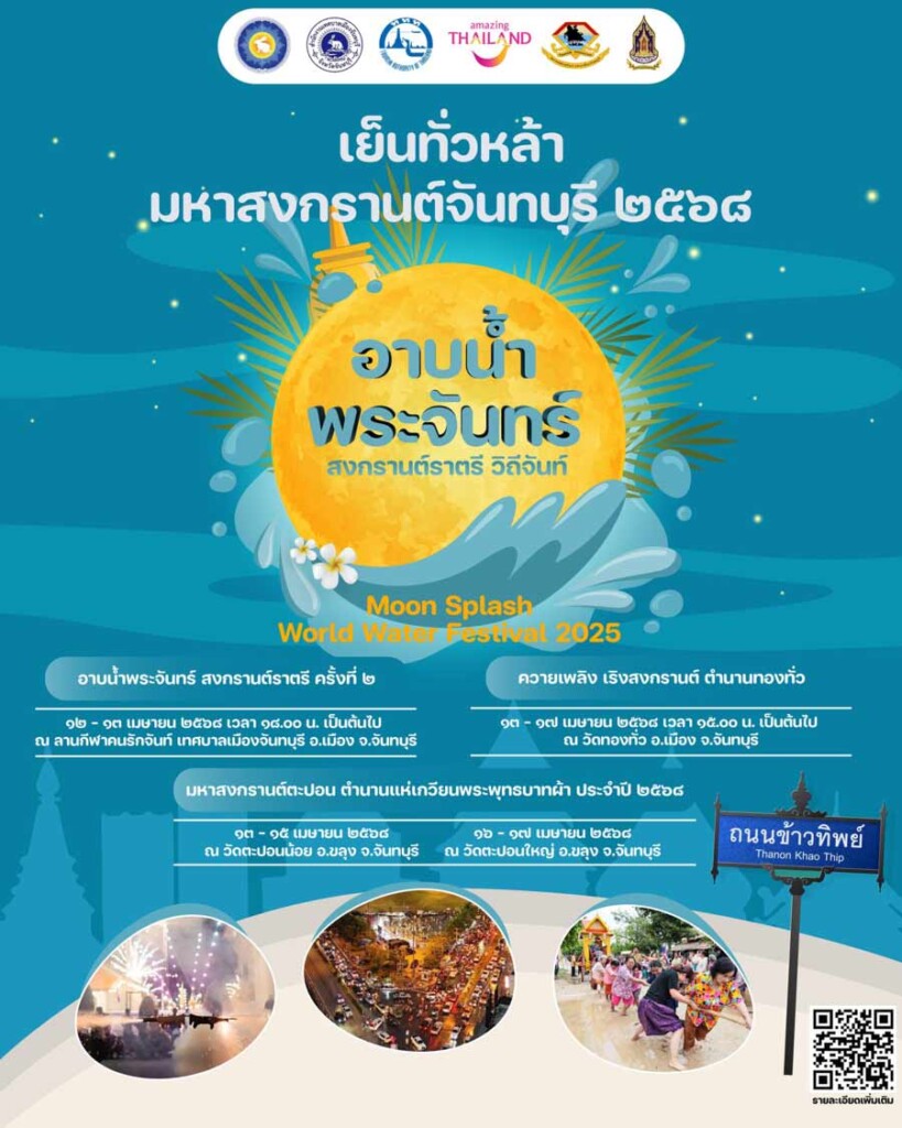 ปีนี้พิเศษกว่าที่เคย พบกับความยิ่งใหญ่ของเทศกาลสงกรานต์ ที่ผสมผสานความทันสมัยเข้ากับเสน่ห์แห่งวัฒนธรรมไทยได้อย่างลงตัว กับ เย็นทั่วหล้า มหาสงกรานต์จันทบุรี 2568 พบกับไฮไลท์ สงกรานต์จันทบุรี หนึ่งเดียวในประเทศไทย อาบน้ำพระจันทร์ สงกรานต์ราตรี แห่งแรกของประเทศไทย ที่คนเมืองจันท์เขารวมตัวกันออกมาเล่นน้ำยามค่ำคืน จนเป็นตำนานมากว่า 50 ปี