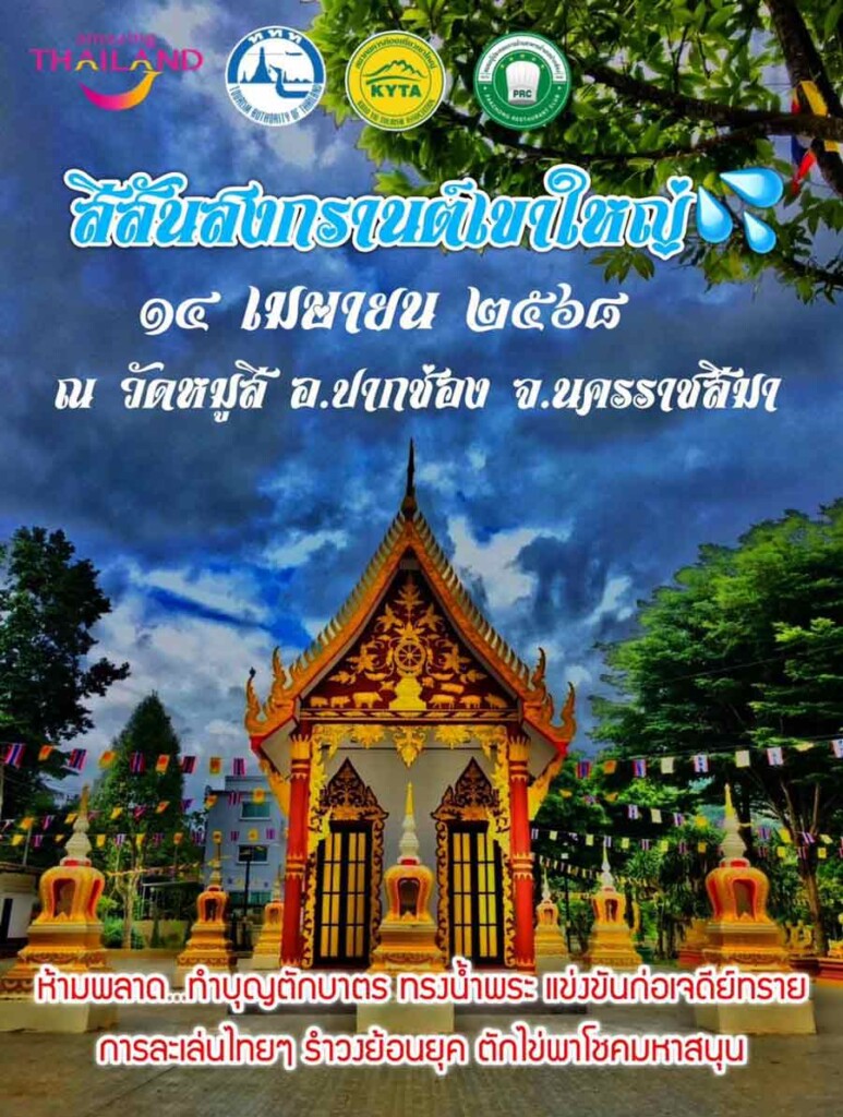 มาร่วมกันอนุรักษ์ สืบสาน เผยแพร่ประเพณีท้องถิ่นที่ดีงาม มรดกภูมิปัญญาทางวัฒนธรรม กับ งานสืบสานประเพณี มหาสงกรานต์เขาใหญ่ ณ วัดหมูสี เริ่มด้วยทำบุญตักบาตร ขอพรให้ชีวิตมีความสุข ความโชคดี แข่งขันก่อเจดีย์ทราย และตักไข่พาโชคดี พิธีสรงน้ำหลวงพ่อเขาใหญ่ พระพุทธรูปประจำวัดหมูสี พิธีรำบวงสรวงสักการะ หลวงพ่อเขาใหญ่ พระพุทธรูปประจำวัดหมูสี ให้คุ้มครองลูกหลาน สรงน้ำพระ และรดน้ำดำหัวผู้ใหญ่ สืบสานประเพณีวัฒนธรรมไทย ประกาศผลแข่งขันก่อเจดีย์ทรายและร่วมรำวงย้อนยุค