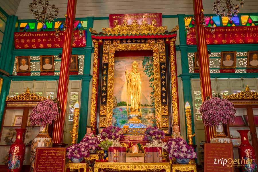 เริ่มต้นพิกัด ไหว้เจ้าแม่กวนอิม แห่งแรก เรามากันที่ มูลนิธิเทียนฟ้า ย่านเยาวราช กรุงเทพฯ อยู่ตรงข้ามวัดไตรมิตรวิทยารามวรวิหาร ภายในมูลนิธิมีวิหารเจ้าแม่กวนอิม พระโพธิสัตว์อวโลกิเตศวร ปางประทานพร องค์เจ้าแม่กวนอิม ทำด้วยไม้จันทร์หอมแกะสลัก อัญเชิญมาจากประเทศจีน ประชาชนทั้งชาวไทยและชาวจีน นิยมมาขอพรเจ้าแม่กวนอิมที่นี่เป็นจำนวนมาก โดยเรื่องที่มาขอพรมักจะเป็นเรื่องสุขภาพ ขอให้หายจากอาการเจ็บไข้ได้ป่วยต่างๆ และขอให้สุขภาพแข็งแรงนั่นเอง