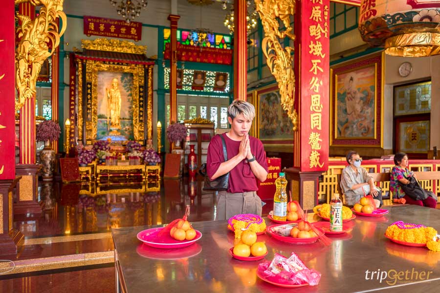 เรายังอยู่กันย่านเยาวราช เรามากันที่วัดมังกรกมลาวาส เป็นวันที่คนนิยมมาไหว้ เทพเจ้าไท้ส่วยเอี๊ยะ แก้ชงเป็นประจำทุกปี และยังเป็นอีกหนึ่งสถานที่ที่เหล่าคู่รัก มักจะมาขอพรเรื่องลูก มาขอลูก กับเจ้าแม่กวนอิมปางอุ้มบุตรที่วัดมังกรแห่งนี้อีกด้วย