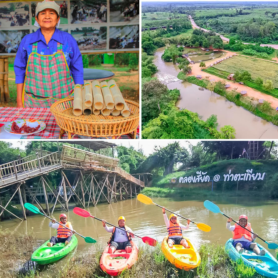 ชุมชนบ้านคลองยาง จุดเช็คอินสไตล์ธรรมชาติทที่น่าค้นหา ที่รอให้ไปสัมผัสทำความรู้จักกันมากมายอย่าง วัดถ้ำเขาประทุนที่มีถ้ำหินหงอกหินย้อย การเดินทางต้องนั่งเรือเข้าไปชม เพราะว่าในถ้ำนั้นเป็นแอ่งน้ำ และอีกหนึ่งจุดสุดอันซีน โพรงพญานาค เป็นหินหงอกหินย้อยสุดพิเศษ ที่เมื่อเราเคาะเสียงจะดังราวกับระฆัง แถมยังมีลานหินทอง ที่เมืองกระทบกับแสงจะเปล่งประกายทองอร่าม นอกจากนี้ยังมีกลุ่มผลิตภัณฑ์ทองเหลือง ให้ได้ทดลองตอก ดุนลาย และช้อปกลับไปใช้งาน ส่วนมุมชิมก็มีเมนูเด็ดๆ อย่าง ไข่เค็ม น้ำพริกปลาร้าสูตรลับเฉพาะ และน้ำเห็ดหลินจือ ถ้ายังไม่หนำใจที่นี่ยังมีมุมชิลล์ศาลากลางน้ำ ซึ่งเป็นที่ประดิษฐานหลวงปู่มั่นแกะสลักให้สักการะกันก่อนกลับอีกด้วย