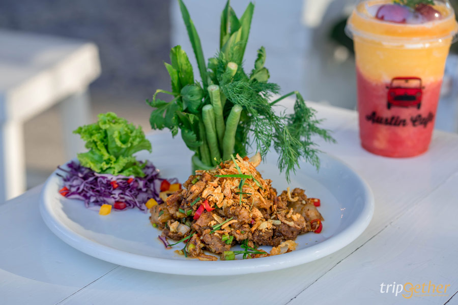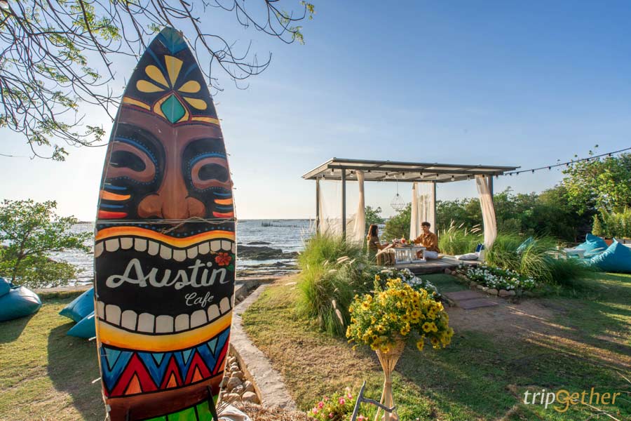 เช็คอินคาเฟ่สไตล์บาหลีไปแล้ว ชวนไปนั่ง คาเฟ่บางแสน แต่ฟีลฮาวายกันต่อที่ ออสติน คาเฟ่ (Austin Cafe) พิกัดอยู่ริมทะเลบางแสน รายล้อมด้วยหาดทรายสีขาวและธรรมชาติสีเขียว Vibe ดีมาก ภายในร้านก็มีโซน Indoor ห้องกระจกติดแอร์ และโซน Outdoor ให้มานั่งรับลมฟินๆ ในส่วนของอาหารและเครื่องดื่ม มีเมนูให้เลือกเยอะมากจนเลือกกินไม่ถูกเลยทีเดียว ไม่ว่าจะเป็นของคาว เบเกอรี่ของหวาน ของกินเล่น นอกจากนี้ก็ยังมีมุมถ่ายรูปสวยๆ เพียบ ถูกใจสายคาเฟ่แน่นอน