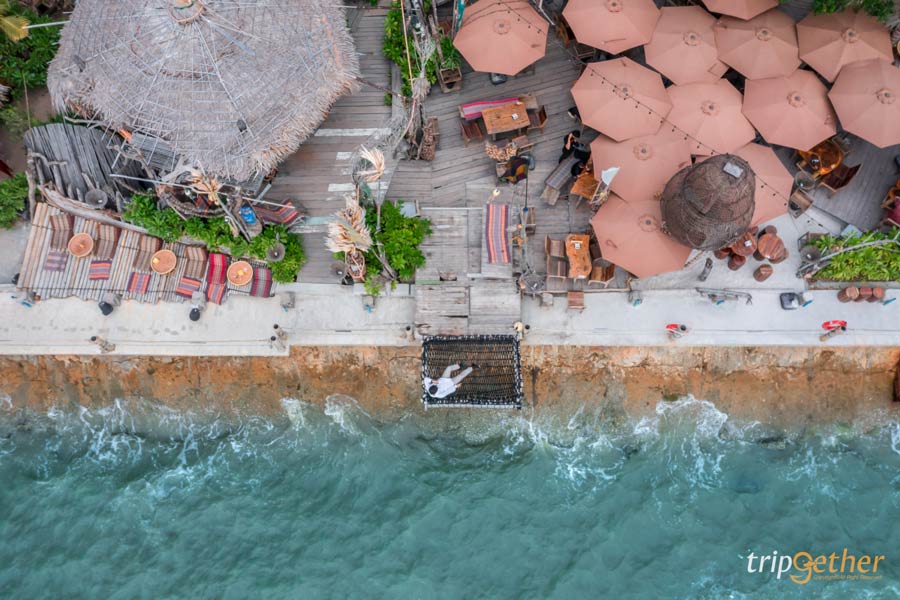 เอาใจสายชิลล์เอาท์ ไปนั่งติดทะเลด้วยกันที่ ท่าช้าง บางแสน (Thachang Bangsaen) บีชคลับและร้านอาหารสุดฮิตริมทะเล ใครจะมาแนะนำต้องโทรจองโต๊ะล่วงหน้าไว้ก่อนเลย ดีไซน์ของร้านเข้ากับบรรยากาศของท้องทะเลสุดๆ เน้นโทนสีน้ำตาลตัดกับสีฟ้า ถ่ายรูปมาแล้วสวยคุมโทนมาก สำหรับที่นั่งในร้านจะเป็นแบบโอเพ่นแอร์ทั้งหมด โดยมีมุมให้เลือกนั่งเยอะมาก และมาถึงท่าช้างก็ห้ามพลาดเมนูซิกเนเจอร์อย่าง แสงสว่าง แสงสุดท้าย และช้างใจร้าย หรือถ้าใครอยากกินจริงจังแบบอิ่มท้องไปเลย ทางร้านก็มีเสิร์ฟเมนูอาหารมากมาย ทั้งอาหารทะเลสดใหม่ อาหารเหนือ ต้มยำ แกง ทอด ครบ! และขอแอบกระซิบว่าทางร้านมีดีเจที่เล่นตั้งแต่ร้านเปิดจนร้านปิดเลยนะ
