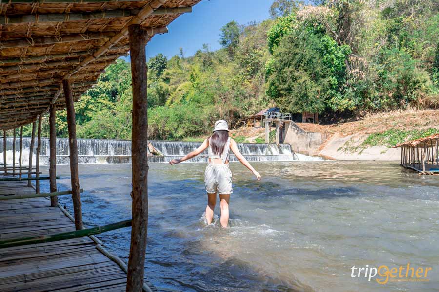 ที่เที่ยวแม่วางแห่งสุดท้าย เราไปเล่นน้ำคลายร้อนกันที่ ฝายนอน จุดเช็คอินคลายร้อนของ อ.แม่วาง เป็นฝายน้ำล้นที่มีหาดทรายเล็กๆ สามารถมานั่งเล่นน้ำคลายร้อนได้ แม้ว่าเราจะเล่นน้ำกลางแดดจ้าก็ตาม แต่น้ำใสสะอาด เย็นสดชื่น จึงเป็นจุดคลายร้อนที่หลายคนนิยมมาเที่ยวกัน นอกจากจะได้เล่นน้ำแล้ว ยังมีซุ้มนั่งชิลล์ๆ ริมน้ำ มีร้านอาหารให้บริการ ปิกนิกริมน้ำกันไปเลย
