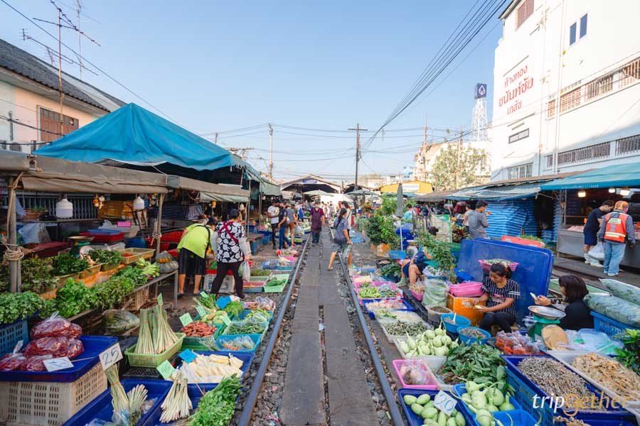 และแล้วก็มาถึงไฮไลท์ของทริป นั่นก็คือ ตลาดร่มหุบ ตลาดที่ตั้งอยู่ริมรางรถไฟแบบชิดสุดๆ ปกติจะเห็นพ่อค้าแม่ค้ากางร่ม วางของขายตามแนวราง แต่ทันทีที่เสียงหวูดรถไฟดังขึ้น ทุกอย่างจะเปลี่ยนในไม่กี่วินาที ร่มถูกหุบ แผงถูกเลื่อน นักท่องเที่ยวหลบเข้าข้างทาง แล้วรถไฟก็วิ่งผ่านไปแบบเฉียดสุดๆ เป็นภาพที่ทั้งตื่นเต้นและอันซีนมาก