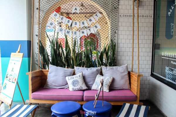 ด้วยความอยากของหวาน เราเลยเดินเข้าร้านนี้ ร้านน่ารักตกแต่งด้วยธีมฟ้าขาว ดูทะเล๊ทะเล ร้านนี้ตั้งอยู่ที่ถนนถลาง หาไม่ยากๆ เดินเพลินๆ อยากแวะพักเเหนื่อย พักเมื่อย ก็ลองมาร้านนี้ดู บรรยากาศภายในร้านสบายใจสุดๆ
