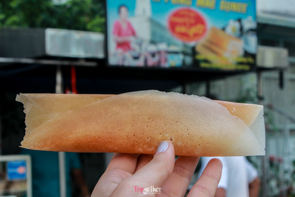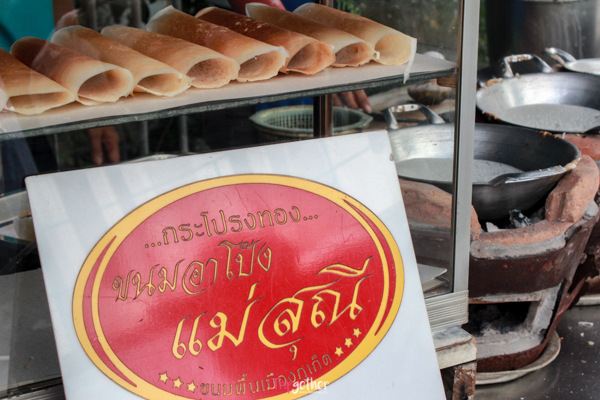 ขนมหน้าตาไม่คุ้นเคย เรียกเราด้วยกลิ่นหอม ๆ จึงเดินไปที่หน้าร้านด้วยความอยากรู้ ขนมอันนี้มีชื่อว่า ขนมอาโป๊ง หรือขนมกระโปรงทอง รสชาติคล้ายถังแตกแต่แป้งบ้างกรอบเหมือนทองม้วน มาภูเก็ตต้องลองไปชิมให้ได้ ราคาไม่แพงด้วยชิ้นละ 3 บาท 7 ชิ้น 20 บาท เท่านั้น ร้านตั้งอยู่ที่ ซอยสุ่นอุทิศ ถนนเยาวราช ร้านเปิดช่วงบ่าย ๆ