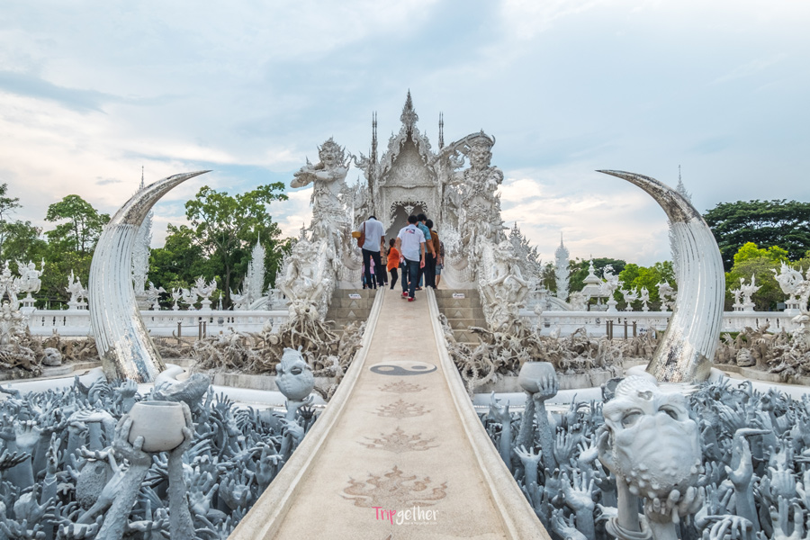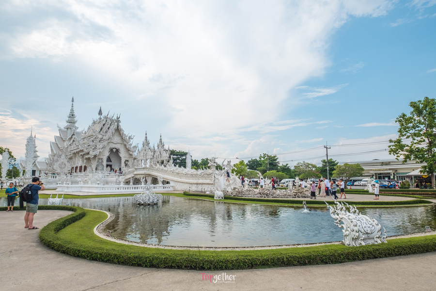 วัดร่องขุ่น สร้างขึ้นเมื่อปี พ.ศ. 2540 ซึ่งอาจารย์เฉลิมชัยปรารถนาจะสร้างวัดให้เหมือนเมืองสวรรค์ที่มนุษย์สัมผัสได้ โดยได้รับแรงบันดาลใจมาจากชาติ ศาสนา และพระมหากษัตริย์ จุดเด่นอยู่ที่อุโบสถสีขาวประดับด้วยกระจกแวววาววิจิตรงดงามแปลกตา มีปูนปั้นเป็นลายไทยที่งดงามและอ่อนช้อย ระหว่างเดินเข้าอุโบสถจะผ่านสะพานมีรูปปั้นที่สื่อถึงขุมนรก เพื่อให้เราลดละกิเลสต่างๆ ก่อนที่จะเข้าสู่พระอุโบสถ สำหรับวัดร่องขุ่นจะเปิดให้เข้าชมทุกวันตั้งแต่ 6.30 – 18.00 น. นักท่องเที่ยวคนไทยเข้าชมฟรี ชาวต่างชาติเสียค่าเข้าชมคนละ 80 บาท