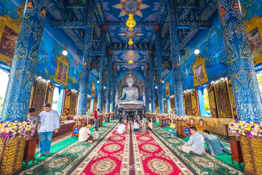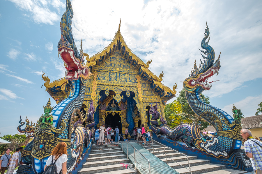 วัดร่องเสือเต้น ไฮไลท์ของวัดนี้คือพระอุโบสถสีน้ำเงิน สร้างขึ้นโดยศิลปินชาวเชียงราย คุณพุทธา กาบแก้ว หรือสล่านก เป็นศิลปะแบบไทยประยุกต์ ด้านหน้ามีพญานาคขนาดใหญ่ปั้นด้วยลวดลายที่อ่อนช้อย แต่งแต้มสีสันสวยงาม ภายในอุโบสถมีพระประธานสีขาวมุกองค์ใหญ่เด่นสง่าตัดกับภาพวาดฝาผนังสีน้ำเงินมีลายเส้นที่ชัดเจนสวยงาม สำหรับวัดร่องเสือเต้นเปิดทุกวันตั้งแต่ 7.00 – 20.00 น.
