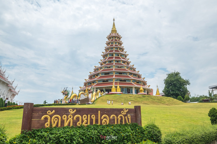 วัดห้วยปลากั้ง เป็นอีกจุกเช็คอินของเหล่าสายบุญ ตั้งอยู่ไม่ไกลจากวัดร่องเสือเต้น เมื่อเข้ามาภายในวัดจะสะดุดตากับรูปปั้นเจ้าแม่กวนอิมขนาดใหญ่ ที่คุณสามารถขึ้นลิฟท์ไปชมวิวสวยๆ รอบวัดได้แบบสุดลูกหูลูกตา ถัดจากองค์เจ้าแม่กวนอิมเป็นอีกหนึ่งไฮไลต์ของวัดนี้คือความสวยงามของพบโชคธรรมเจดีย์ 9 ชั้นที่มีศิลปะการสร้างแบบจีน ภายในมีเจ้าแม่กวนอิมแกะสลักด้วยไม้ให้เราได้เดินชมและกราบไหว้ขอพรเพื่อความเป็นสิริมงคลแก่ชีวิตอีกด้วย