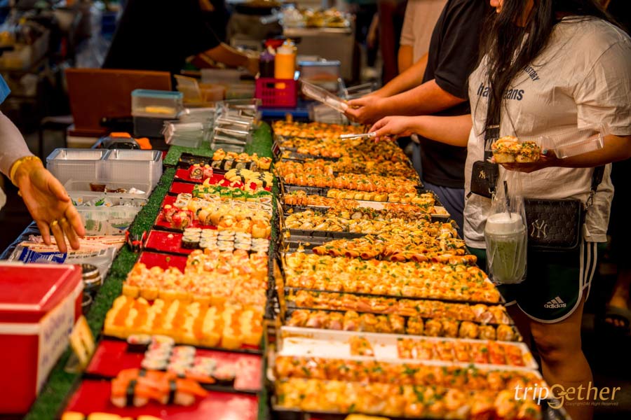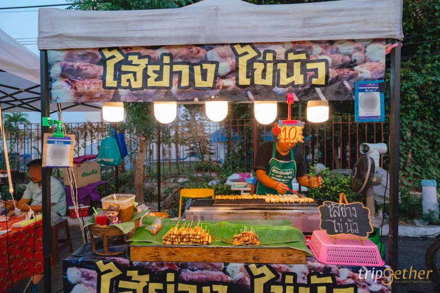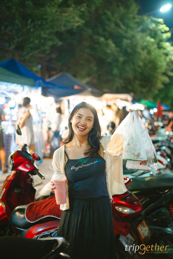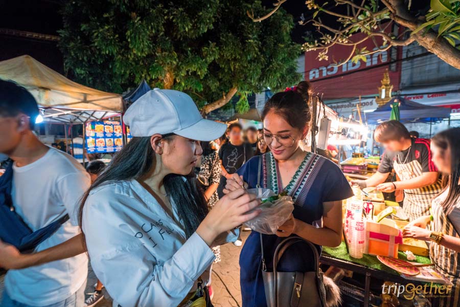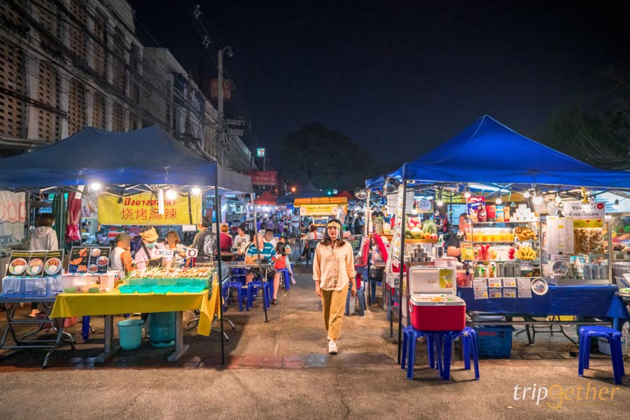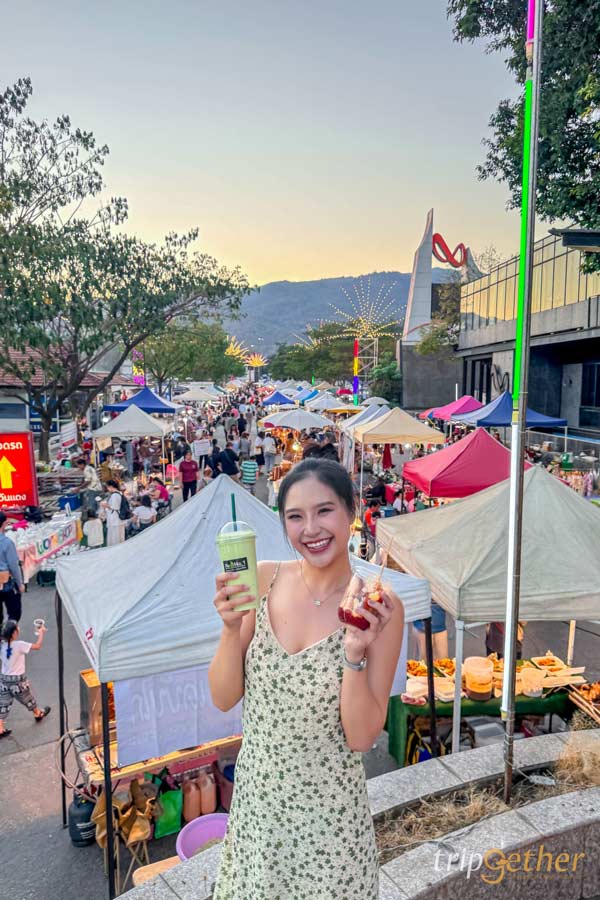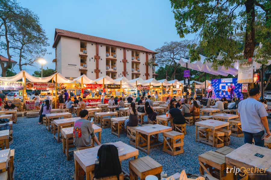เริ่มต้นกันที่แรก ตลาดหลัง มช. ตลาดกลางคืนเชียงใหม่ ยอดฮิต ของเด็กมหาลัยเชียงใหม่ ของกินแน่นทุกตรอกซอกซอย มีเมนูสตรีทฟู้ดให้เลือกซื้อหลากหลายร้านครบทั้งของคาวและของหวาน ไม่ว่าจะเป็น ผัดไทยทรงเครื่อง หมาล่า ยำ ของทอด โรตี หรือชาไข่มุกก็คือมีหมด แถมราคานักศึกษาเป็นมิตรสุดๆ บอกเลยว่าสายกินห้ามพลาดที่นี่เลย