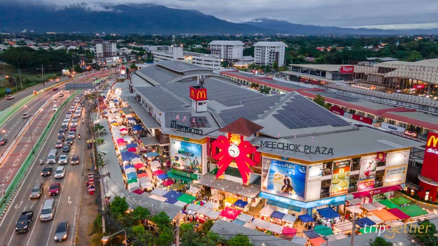 พาเดินเที่ยว กาดนัดมีโชค ตลาดนัดที่ใหญ่อีกแห่งของเชียงใหม่ ที่มีของกินให้เลือกซื้อเยอะมาก แถมยังมีให้เลือกหลากหลายสุดๆ ไม่ว่าจะเป็นกับข้าวเมือง ซูชิ ลูกชิ้นทอด หรือขนมหวาน ขนมไทย เบอร์เกอร์รี่ เครื่องดื่มหวานเย็น นอกจากนี้ยังมีของใช้ เสื้อผ้า ของเล่นน้องๆ หนูๆ เรียกได้ว่ามีครบตอบโจทย์ทั้งครอบครัวและแก๊งค์เพื่อนเลย
