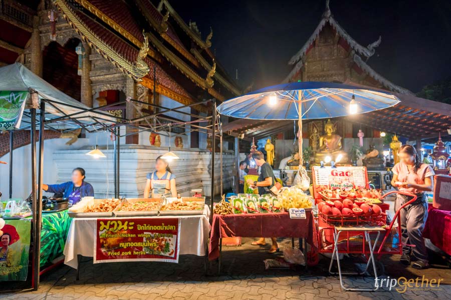 อีกหนึ่ง ตลาดกลางคืนเชียงใหม่ ที่ไม่ไกลจากมหาวิทยาลัยเชียงใหม่ ก็คือ ถนนคนเดินสุเทพ บรรยากาศเรียบง่าย มีร้านค้าประมาณ 20 กว่าร้าน สินค้าที่ขายส่วนใหญ่จะเป็นอาหารพื้นเมือง ไม่ว่าจะเป็น น้ำเงี้ยว ข้าวซอย ไส้อั่ว น้ำพริกหนุ่ม ข้าวซอย และขนมไทยต่างๆ ราคาสบายกระเป๋า เดินไปกินไปเพลินๆ ได้บรรยากาศเชียงใหม่แท้ๆ เลยล่ะ