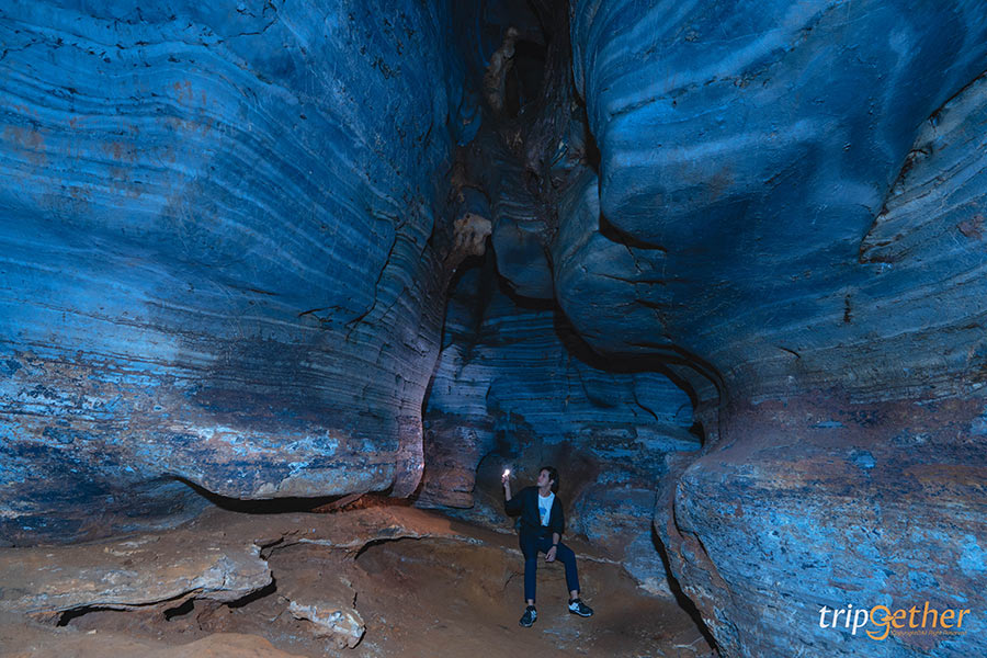 ปักหมุดอันซีนแม่สอด ที่ต้องไปเช็คอิน ถ้ำสีฟ้า ความสวยงามที่เกิดขึ้นเองตามธรรมชาติจากการกัดเซาะจากน้ำจนเกิดเป็นรูปร่างและลวดลายที่แปลกตา ภายในถ้ำมีโถงกว้างหลายๆ โถง ที่สามารถเดินถึงกันได้ ส่วนที่เป็นจุดไฮไลท์ก็คือโถงที่มี เสาหินคล้ายงวงช้าง เป็นมุมถ่ายภาพสุดยูนีคที่ไม่