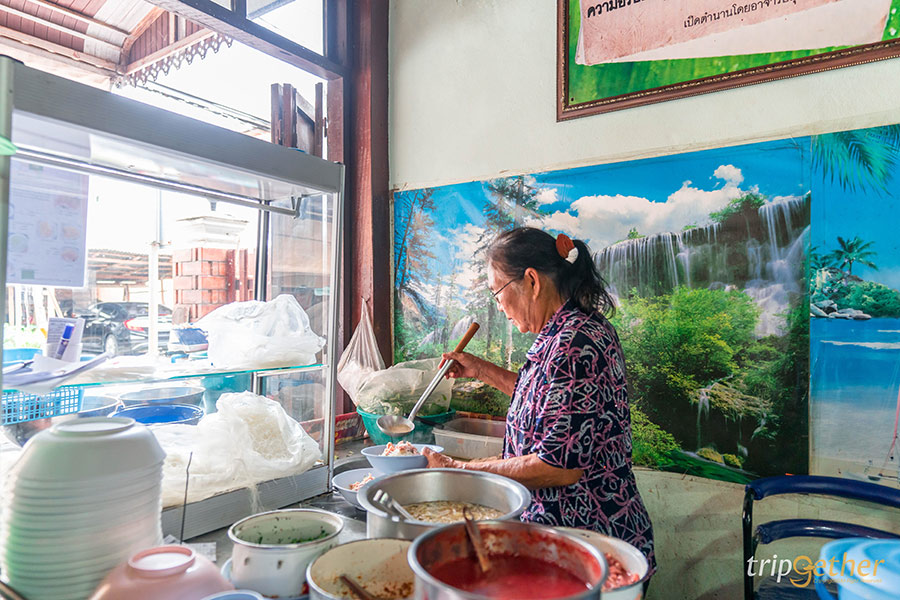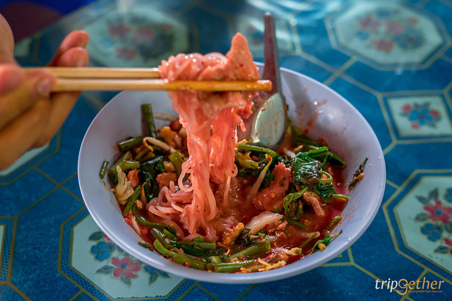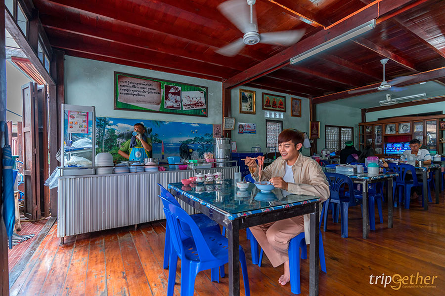 จุ่มนัวยายพัดเชียงคาน ที่เสิร์ฟเมนูอาหารแปลกใหม่ โดยทางร้านเสิร์ฟอาหารที่เหมือนกับสุกี้แต่เราสามารถเลือกเส้นก๋วยเตี๋ยวได้เอง ไม่ว่าจะเป็นวุ้นเส้น หมี่ขาว เส้นเล็ก น้ำซุปข้นๆ ที่ให้ฟีลเหมือนสุกี้ผสมกับเย็นตาโฟ กินกับหมูหมักนิ่มๆ โรยด้วยกระเทียวเจียวและกากหมู เพิ่มเติมความนัวด้วยน้ำจิ้มสูตรเฉพาะจากยายพัด นอกจากนี้ยังมีเมนูอีกมากมายที่ต้องลองชิมให้ได้ อย่างก๋วยจั๊บ ขนมจีนน้ำพริกน้ำยา หมี่กระทิ สำหรับใครที่มาเชียงคานและอยากกินเมนูหากินได้ยากต้องมาที่นี่เลย