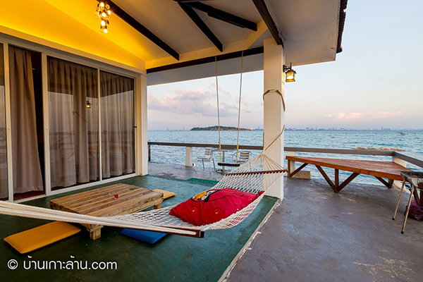 ที่พักสีสันสดใส ในชื่รักเอยเกาะล้าน ที่พักแห่งนี้มาพร้อมกับความรักตามชื่อที่ตั้งไม่มีผิดเพี้ยน ใครที่กำลังอยากสานสัมพันธ์กับกลุ่มเพื่อน เห็นทีต้องรีบแท็กชวนกันมาเที่ยวพักผ่อนกันที่นี่ สไตล์การตกแต่งของที่นี่จะเป็นสไตล์ไทยประยุกต์ที่เติมแต่งที่พักให้สีสันสดใสเข้ากับบรรยากาศซัมเมอร์ของทะเล ส่วนภายในที่พักก็มีมุมชิลเอ้าท์ให้ได้พักผ่อน ล้อมวงชงเหล้ากันแบบเพลินๆ อีกด้วย