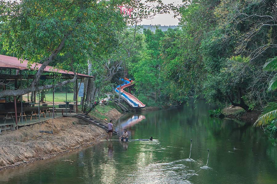 ที่พักสไตส์บ้านพักตากอากาศในป่าตั้งอยู่ติดแม่น้ำเพชรบุรี บรรยากาศที่เป็นธรรมชาติของเกาะกลางน้ำ มีแม่น้ำไหลผ่านสองสาย มีบ้านพักไว้ให้คุณทั้งแบบธรรมดาและแบบ VIP ทั้งยังมีห้องคาราโอเกะทั้งแบบส่วนตัวและแบบรวมให้คุณได้เพลิดเพลิน ร้อง เต้น รำ กันเป็นหมู่คณะ นอกจากนี้ยังมีกิจกรรมทางน้ำก็ที่น่าทำมากมายอาทิเช่น มวยทะเล โหนสลิงลงน้ำ การไต่เชือกข้ามแม่น้ำ หรือจะเป็นการล่องเรือยางชมธรรมชาติริมสองฝั่งแม่น้ำ อีกทั้งยังมี บอลลูนน้ำ สไลด์เดอร์ เรือคายัค ที่มีให้เลือกเล่นมากมาย ตัวเปียกขึ้นมาก็ต่อด้วยการรับลมเย็นๆ กันต่อกับรถ ATV แต่ถ้าใครชอบเล่นเกมส์การแข่งขันเป็นทีมก็มี BB GUN ไว้ให้คุณท้าทายความสามารถเช่นกัน