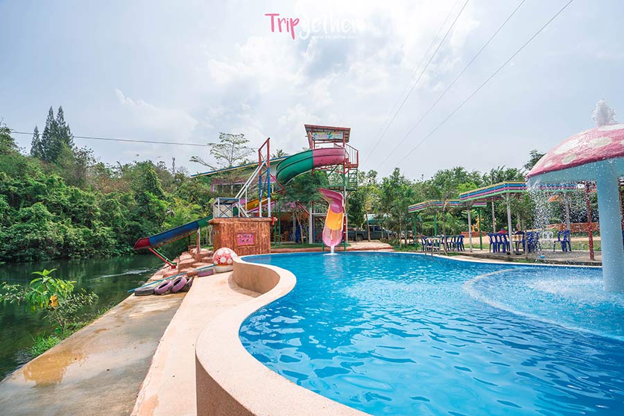 บ้านรักแรกพบ แค่ชื่อก็ทำให้เรารู้สึกแบบนั้นได้จริงๆ กับการตกแต่งบ้านน่ารักๆ สีสันสดใสชวน ให้อยากมานอนพักผ่อนเป็นที่สุด โดยเน้นใช้สีชมพูเป็นหลักแล้วน้ำสีเขียวมาเพิ่มทำให้ดูหวานขึ้นไปอีก ทำเลตั้งอยู่ท่ามกลางบรรยากาศที่ร่มรื่นเดินเพียงไม่กี่ก้าวก็มีที่นั่งเล่นริมแม่น้ำให้ได้นั่งทอดอารมณ์ กิจกรรมก็มีให้เลือกหลากหลายทั้ง Water Park ที่ตกแต่งได้น่ารักเหมือนอยู่ในเมือง Woderland ล่องเรือยางชมบรรยากาศ ตกเย็นก็มีบริการอาหารให้คุณได้อิ่มเอมข้างธารน้ำใส หรือจะเอาขาจุ่มน้ำนั่งชมวิวก็ได้ตามใจเลยนะจ๊ะ